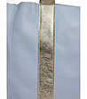 Geantă de mână din piele albastru deschis și auriu