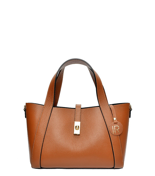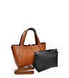 Geantă de mână din piele de culoare coniac cu geantă de toaletă