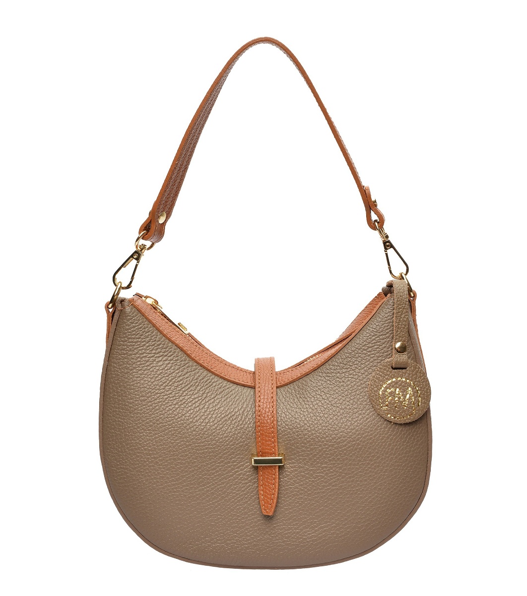 Geantă de mână din piele naturală în culorile taupe și maro Marlit