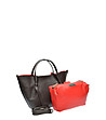 Geantă de mână din piele neagră cu trusă de toaletă roșie