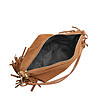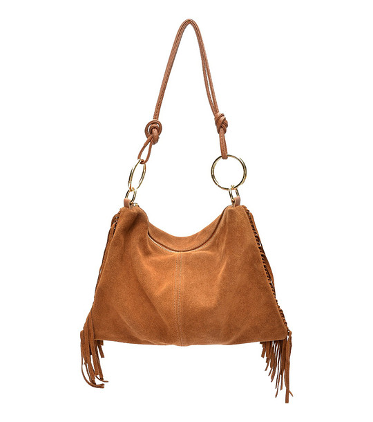 Geantă de mână din piele întoarsă de culoarea coniacului cu franjuri