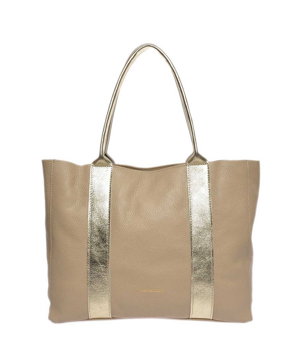 Luisa Vannini Geantă de mână din piele taup și auriu Două mânere 45 cm