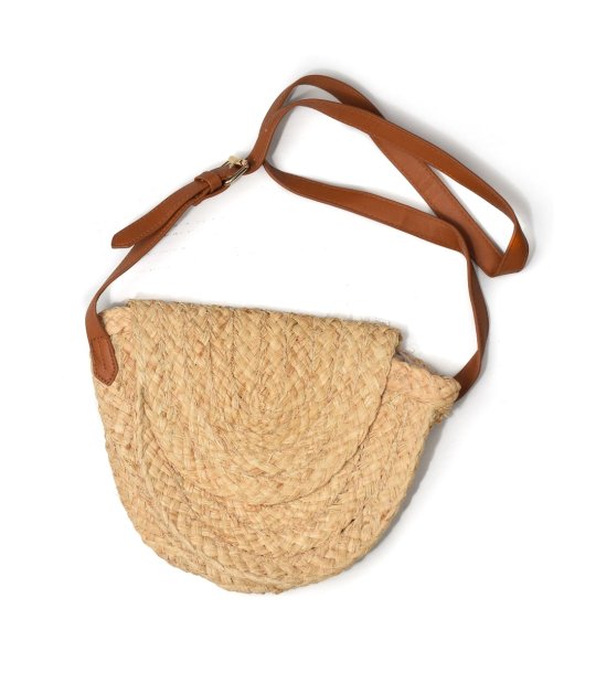 Geantă cu design tricotat și formă semicirculară. Se închide cu mecanism magnetic. Curea de umăr lungă reglabilă.