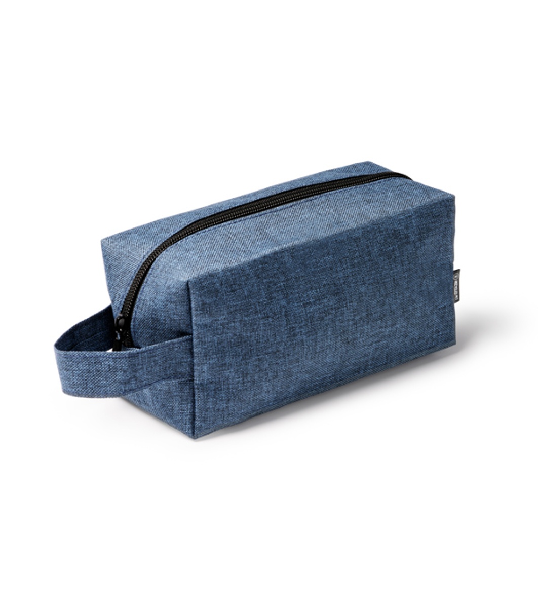 Stamina Geantă de toaletă ALPIS albastră din denim Geantă de toaletă din RPET 600D cu fermoar și mâner practic de transport.