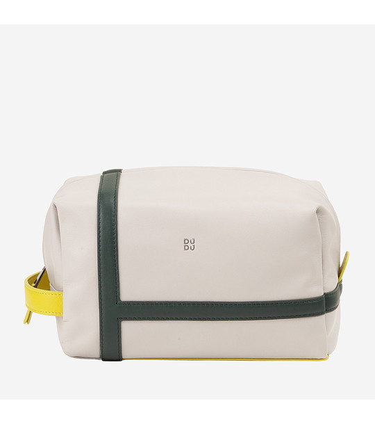 Geantă de toaletă din piele gri perla LAMPEDUSA