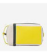 Geantă de toaletă din piele cu formă dreptunghiulară și fermoar superior.