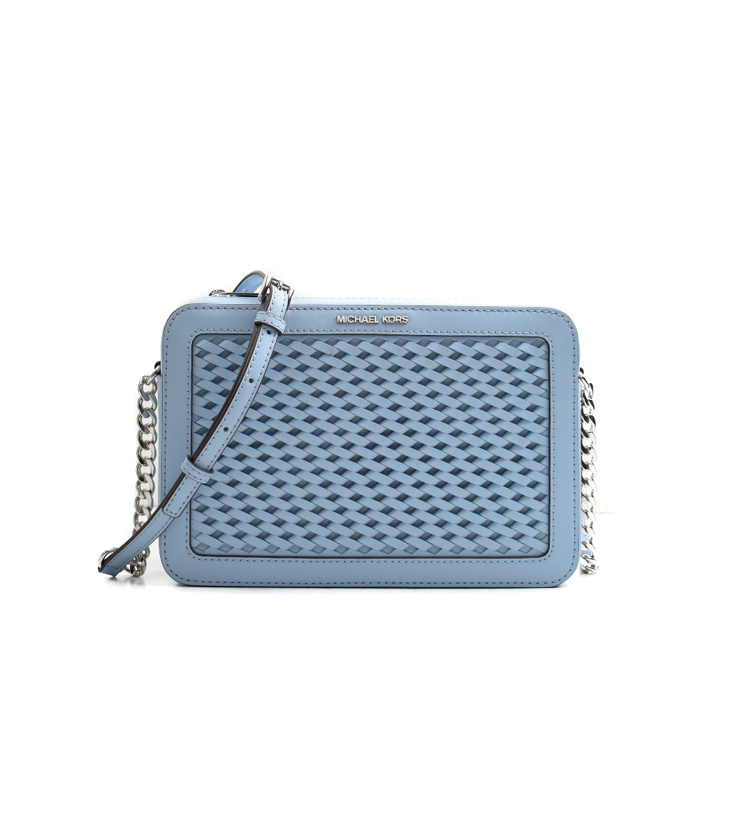 Michael Kors Geantă de umăr albastră pentru femei cu efect tricotat Jet Set Item Geantă crossbody dreptunghiulară pentru femei