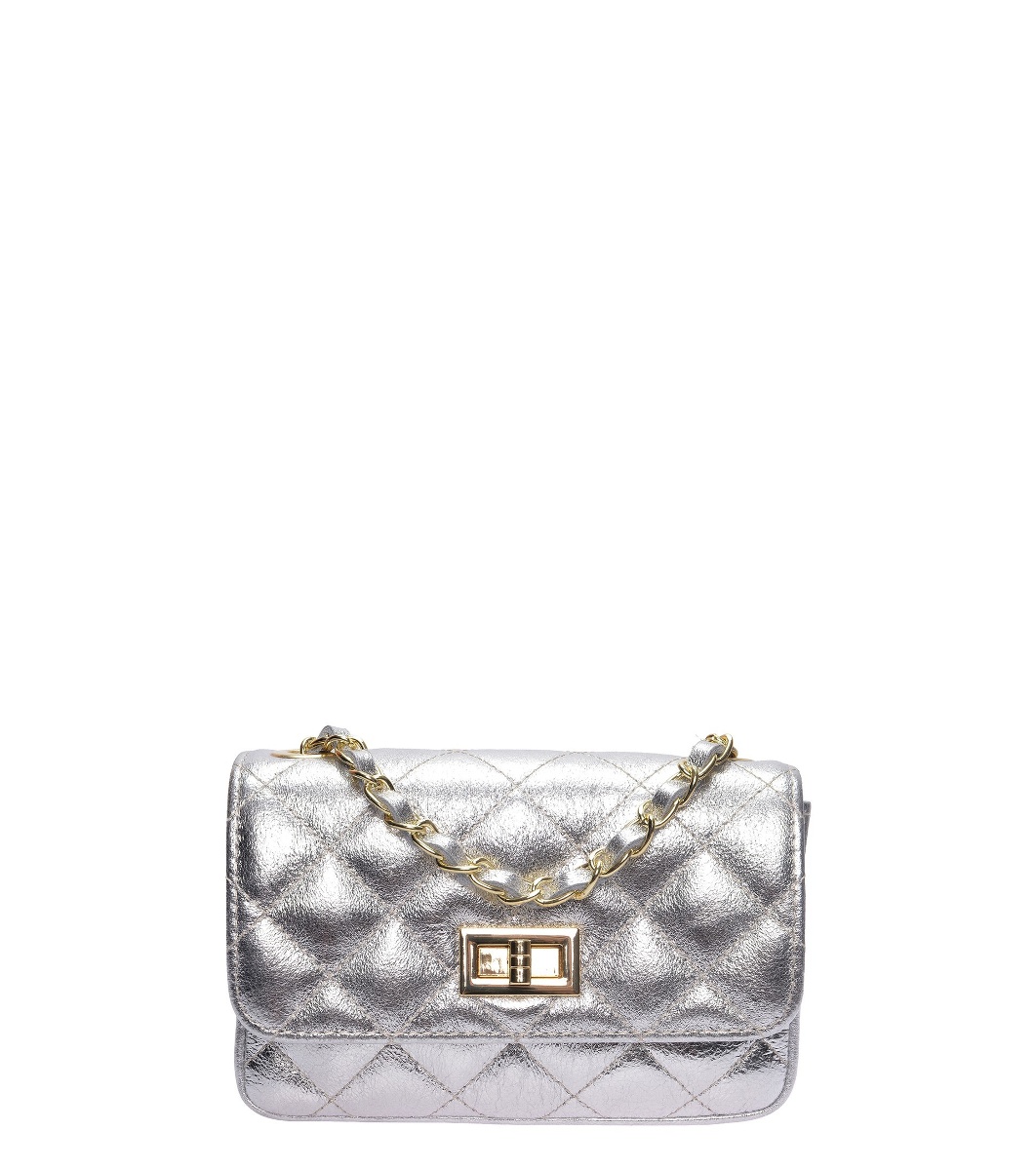 Geantă de umăr argintie cu efect matlasat ARGENTO