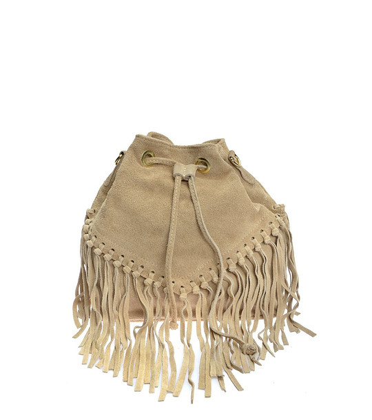 Roberta M Geantă de umăr bej cu franjuri Piele naturală moale cu finisaj întoarsă