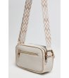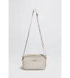 Geantă de umăr dreptunghiulară cu două compartimente cu fermoar.