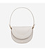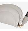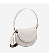 Geantă mică de mână cu formă semicirculară și închidere magnetică.