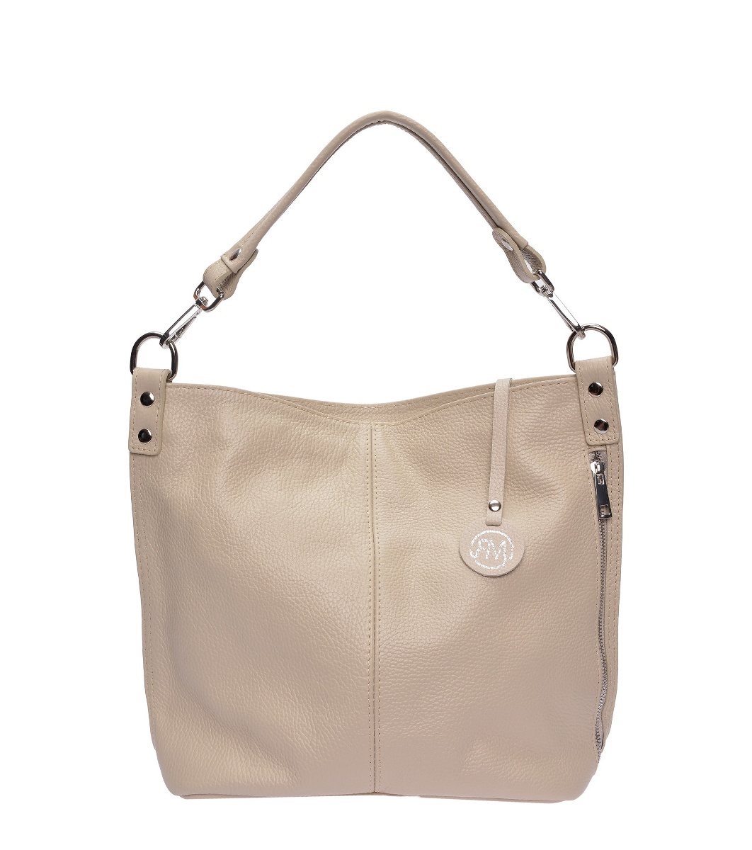 Roberta M Geantă de umăr din piele bej Închidere cu fermoar superior