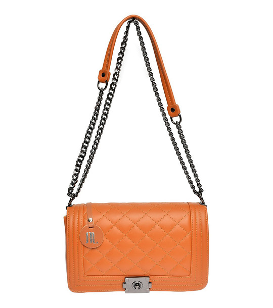 Anna Luchini Geantă de umăr din piele de damă, de culoare coniac, Alfina curea tip lanț cu o lungime de 110 cm