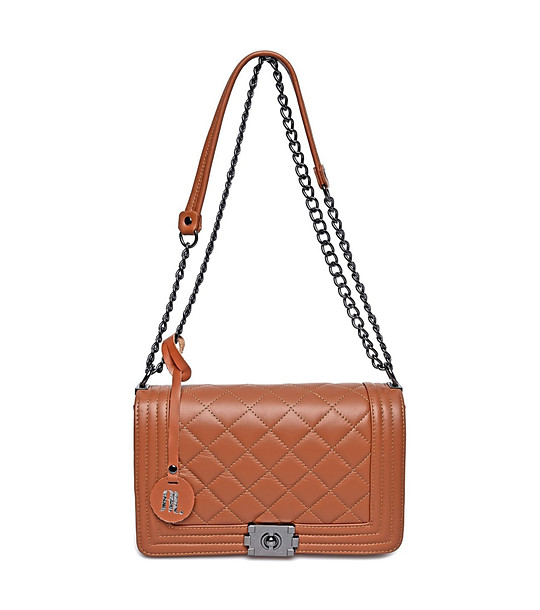 Anna Luchini Geantă de umăr din piele de damă, de culoare coniac, Alfina Curea cu lanț, lungime 110 cm