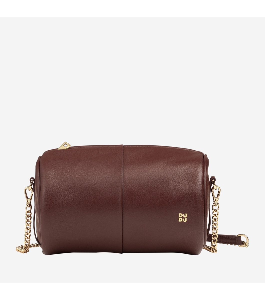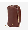 DuDu Geantă de umăr din piele maro închis pentru femei Abigail Geantă cu formă cilindrică și curea reglabilă din lanț și piele.