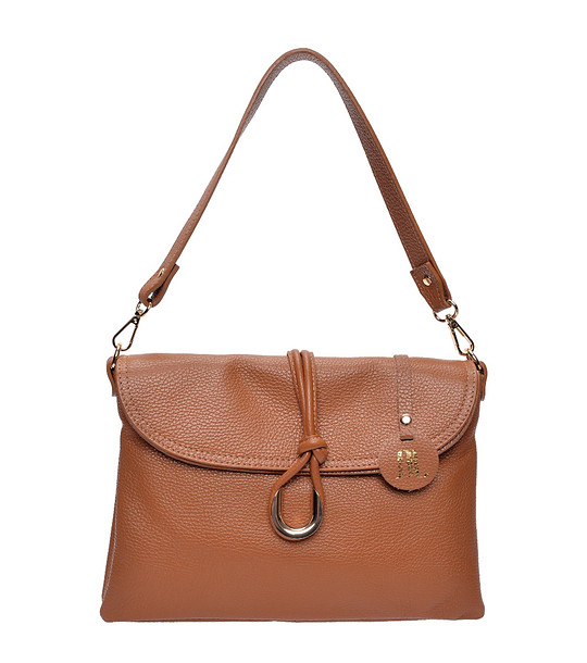 Anna Luchini Geantă de umăr din piele pentru femei cu clapă Geantă de umăr din piele naturală cu textură în relief