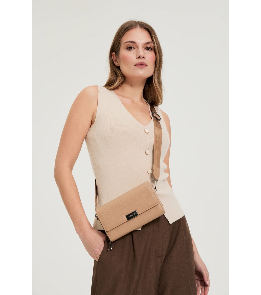 Moodo Geantă de umăr maro pentru femei Geantă de umăr compactă, de formă dreptunghiulară.