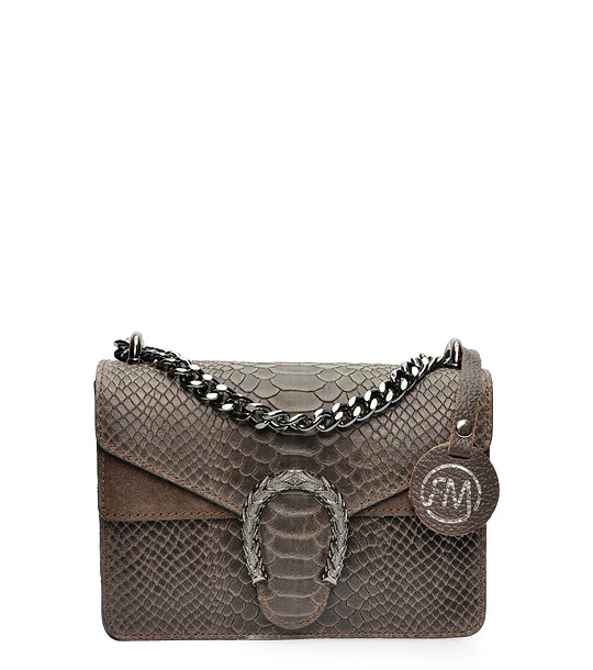 Geantă de umăr maro pentru femei cu relief cu model șarpe