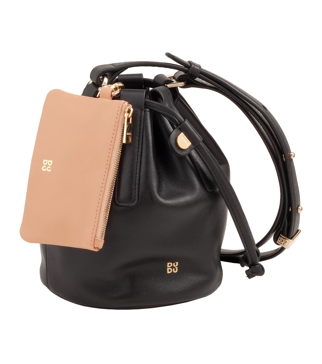 DuDu Geantă de umăr mică din piele pentru femei, de culoare neagră, cu poșetă Filicudi