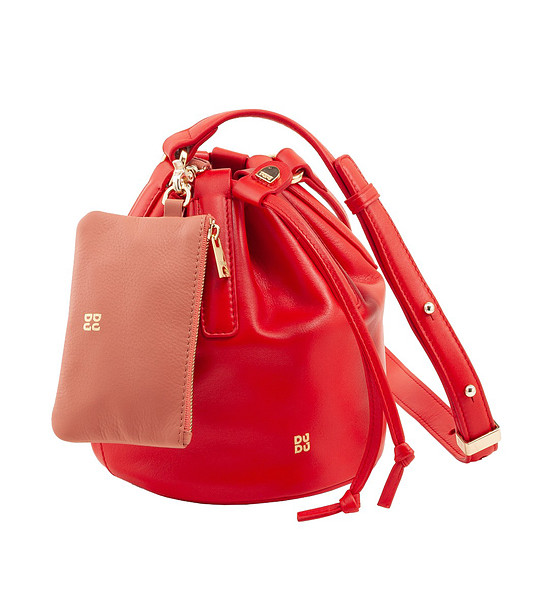 DuDu Geantă de umăr mică pentru femei, din piele Filicudi, de culoare roșie, cu poșetă