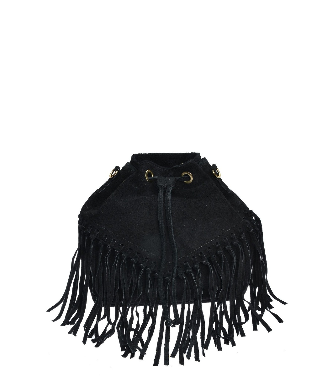 Geantă de umăr neagră cu franjuri