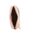 Geantă elegantă pentru femei cu dimensiuni compacte, potrivită pentru călătorii. Are un buzunar frontal cu fermoar și o curea reglabilă din lanț.