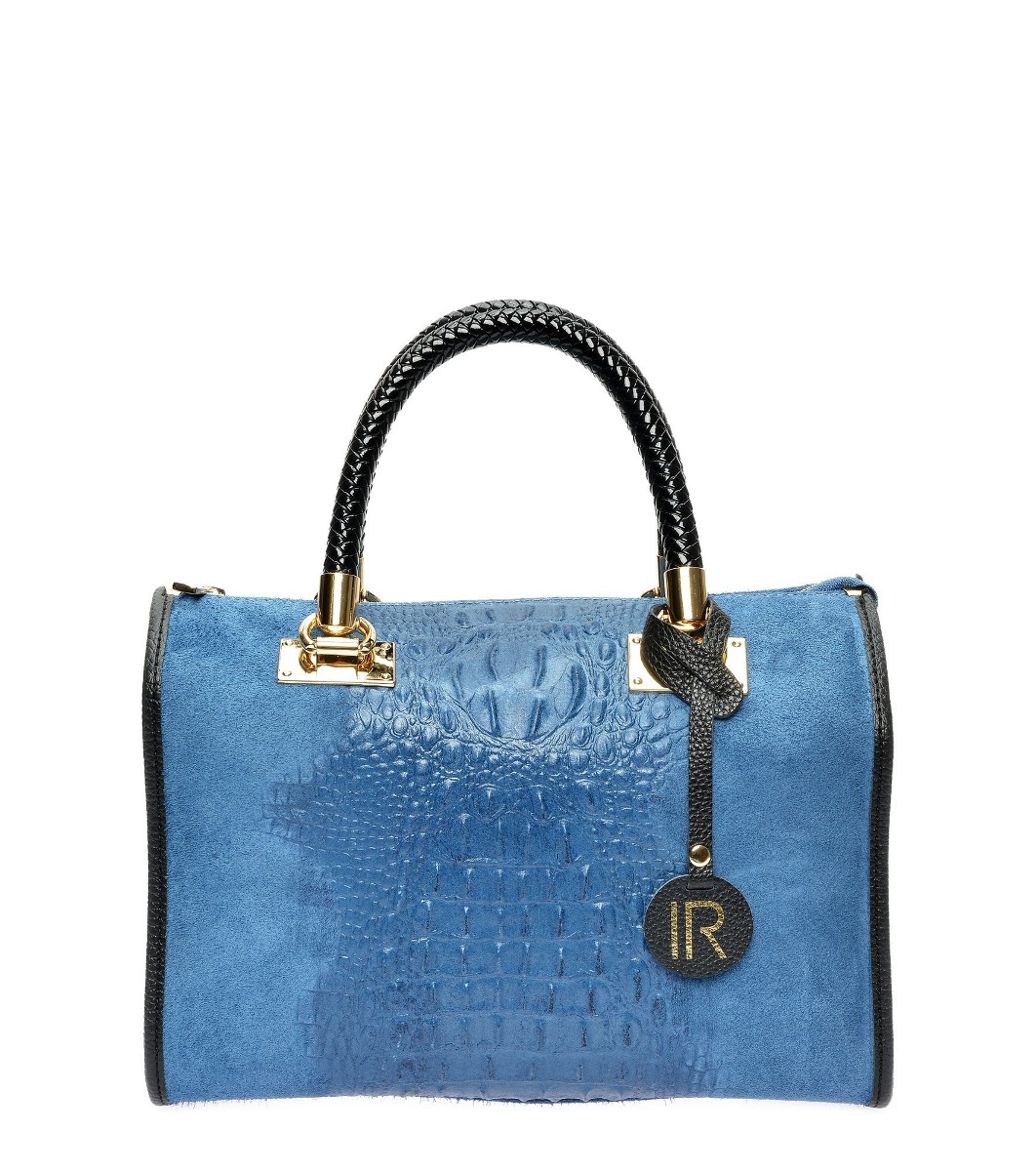 Isabella Rhea Geantă din piele albastră cu elemente în relief Frances Două mânere scurte fixe cu elemente metalice
