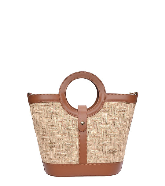 Geantă din piele maro cu mânere rotunde