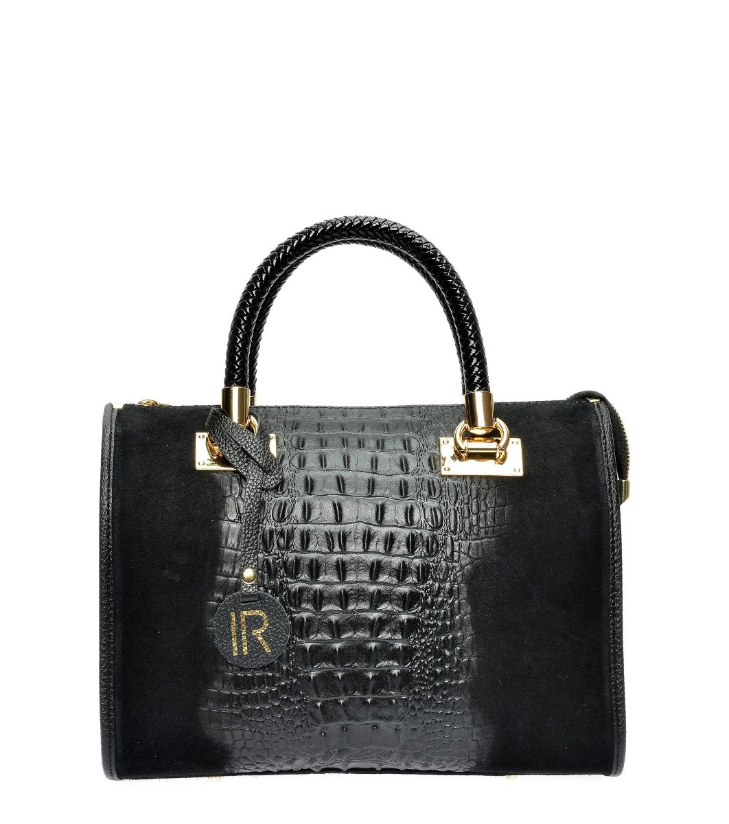 Geantă din piele neagră cu elemente în relief Julina