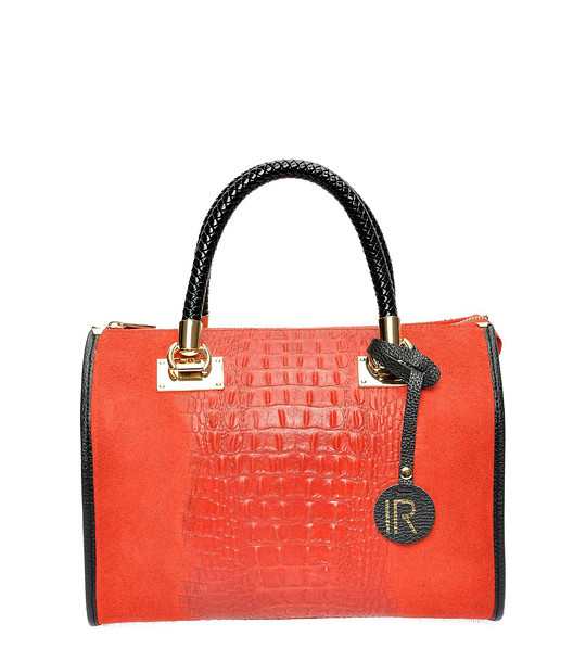 Geantă din piele roșie cu relief croco