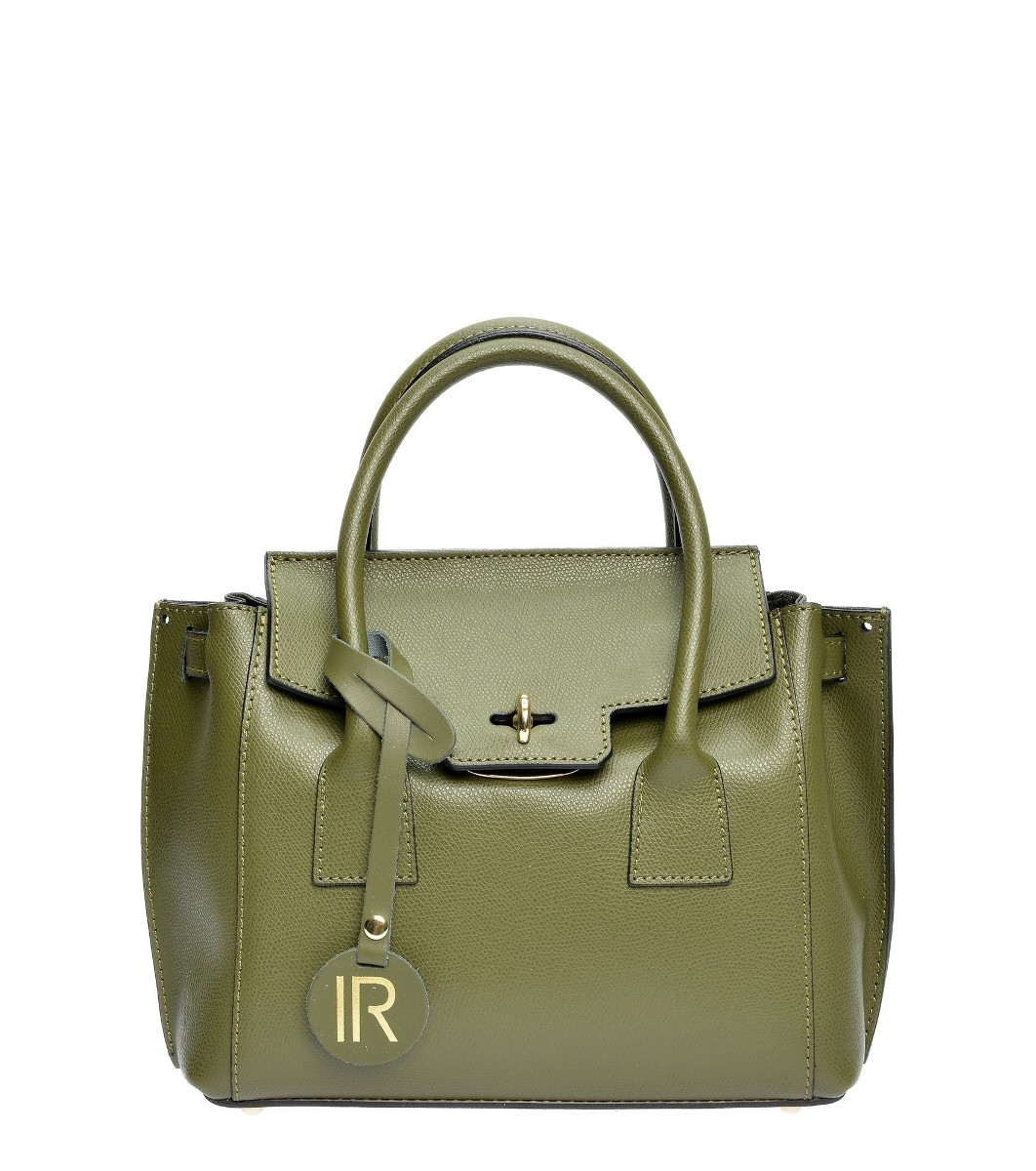 Isabella Rhea Geantă elegantă de damă din piele naturală de culoare verde Monic Două mânere scurte fixe 23 cm