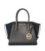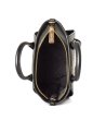 Geantă elegantă cu două mânere și un element decorativ în față. Are o dimensiune compactă și o formă dreptunghiulară. Potrivită pentru uz zilnic.