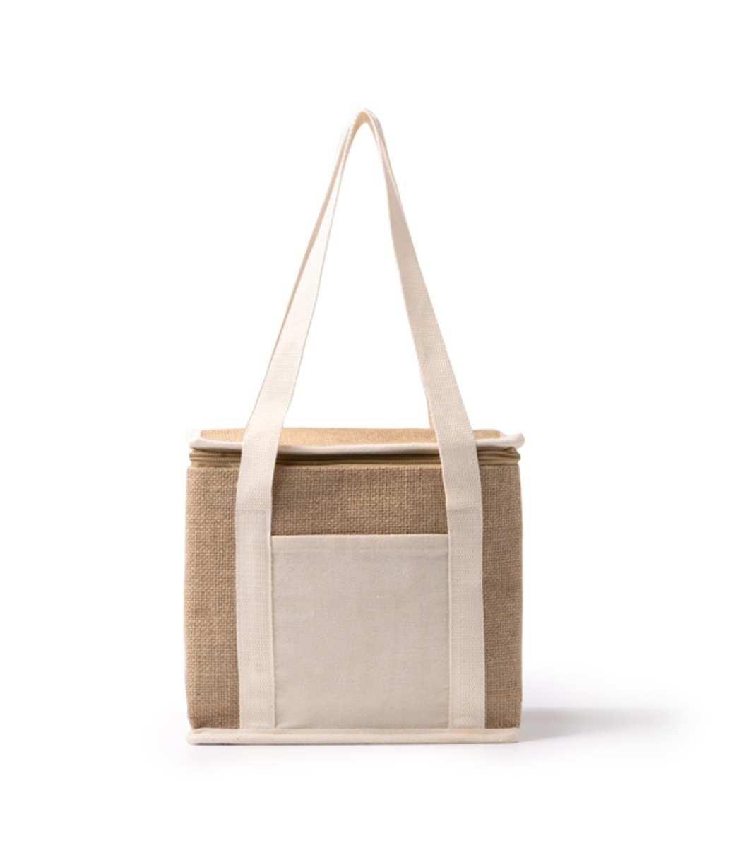 Geantă frigorifică din iută cu buzunar frontal din bumbac.