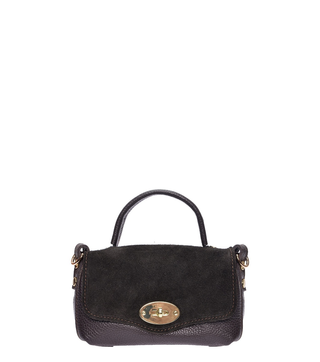 Roberta M Geantă maro închis cu închidere metalică model dreptunghiular mic