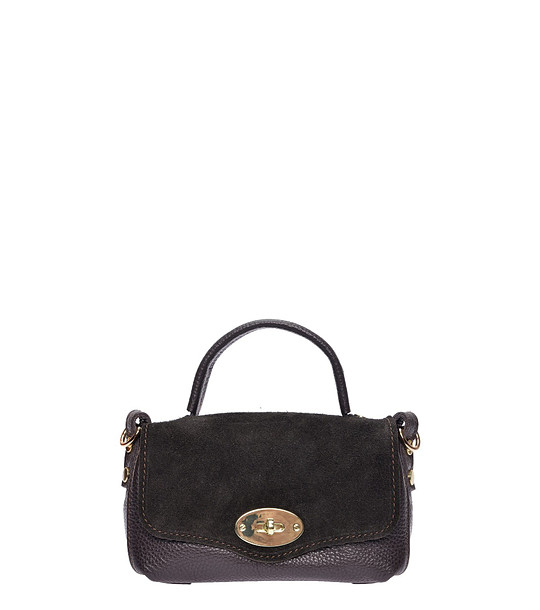 Geantă maro închis cu închidere metalică