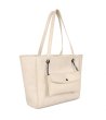 Geantă elegantă cu design matlasat și buzunar exterior cu clapă. Are două mânere lungi conectate prin lanțuri decorative și se închide cu fermoar. Potrivită pentru uz zilnic.