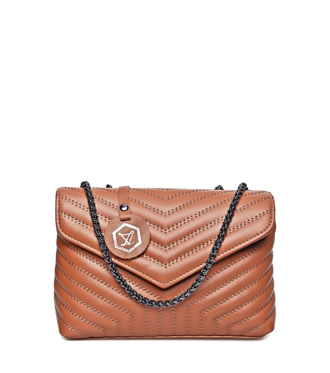 Geantă mică de damă din piele, într-o nuanță de coniac