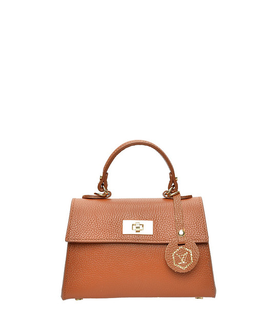 Geantă mică trapezoidală din piele de culoarea coniacului