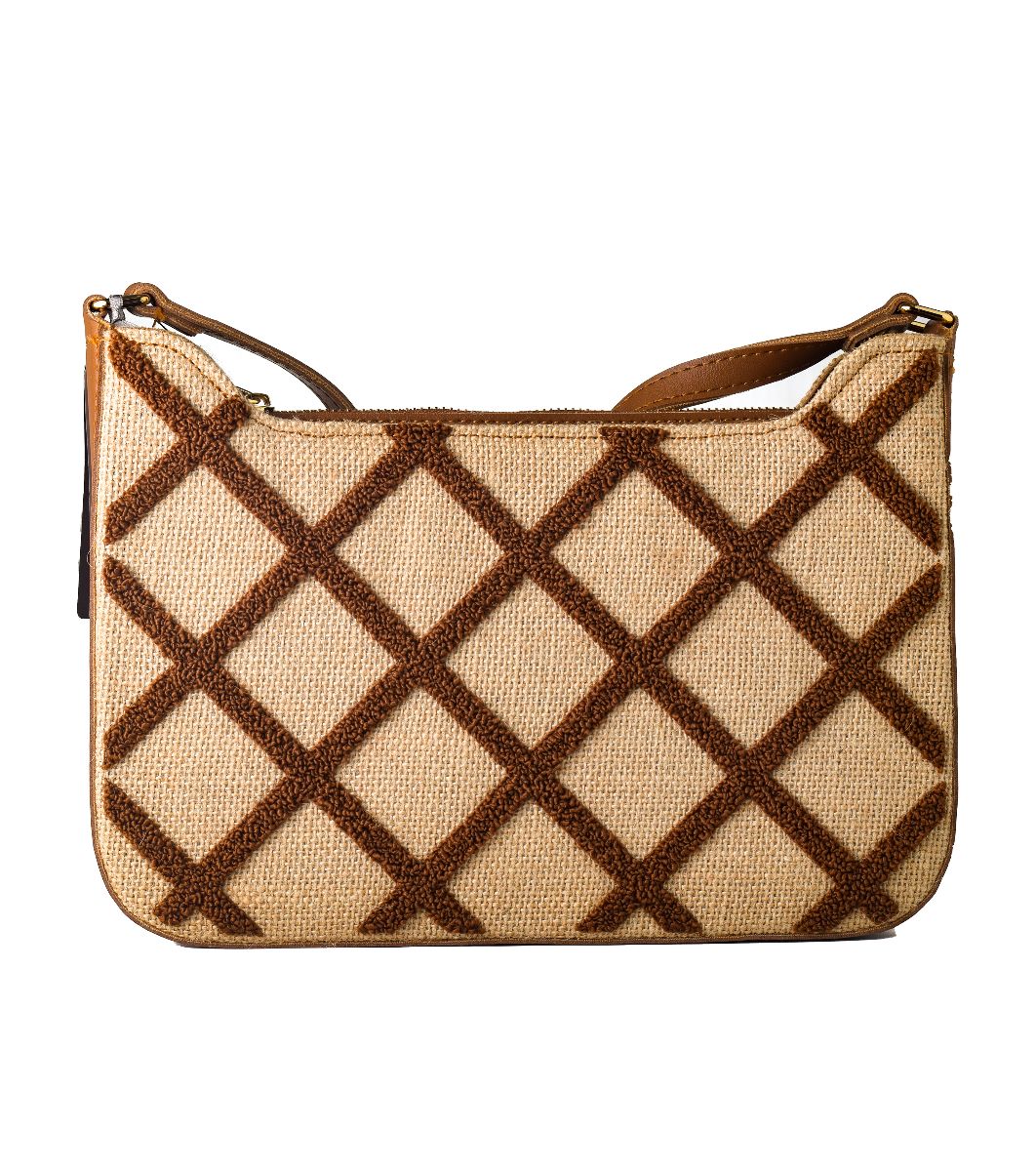 Geantă elegantă cu un design interesant în carouri și închidere practică cu fermoar.