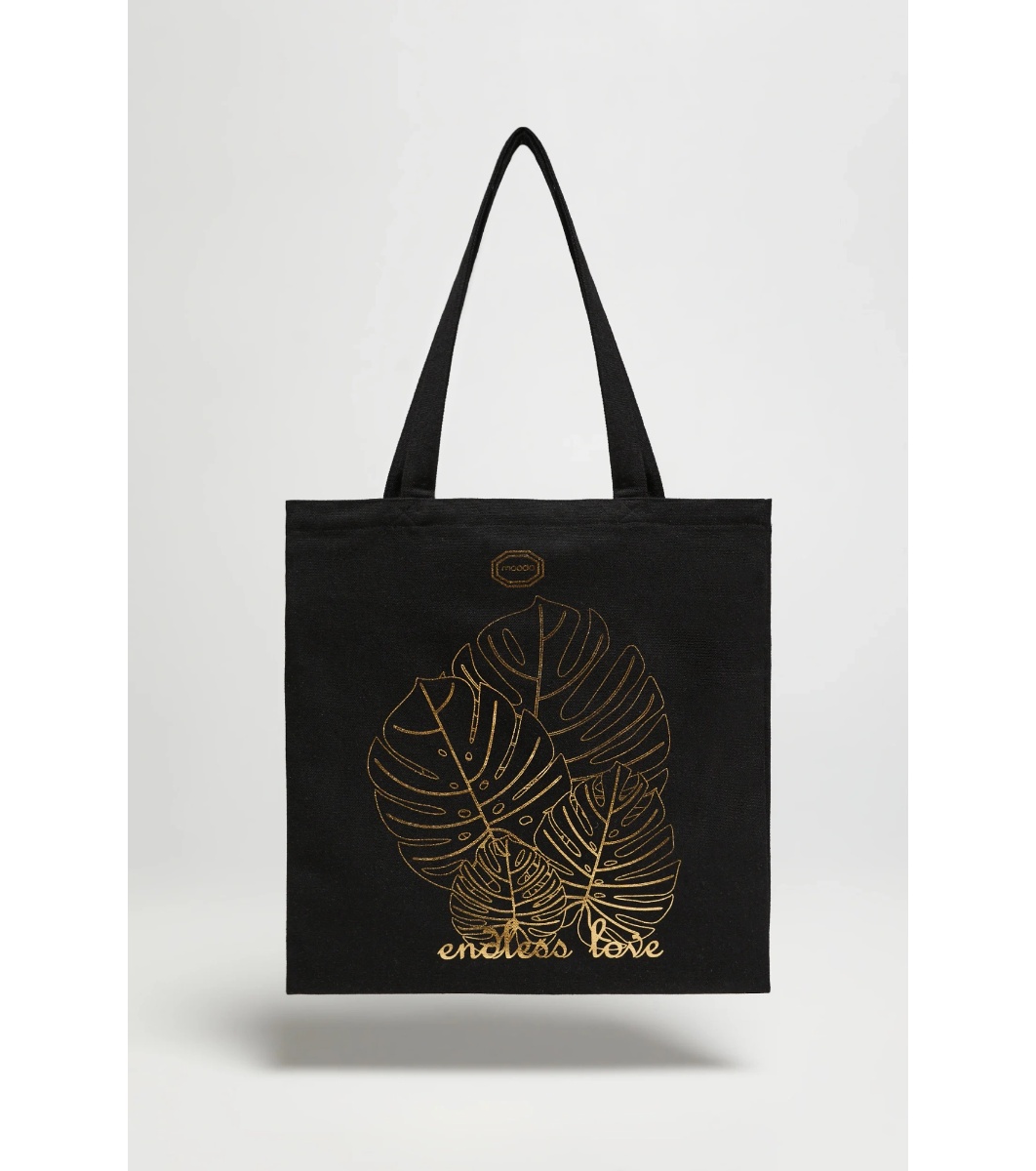 Moodo Geantă neagră cu imprimeu auriu Geantă din material textil