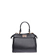 Roberta M Geantă neagră cu încuietoare metalică Geantă de mână din piele naturală