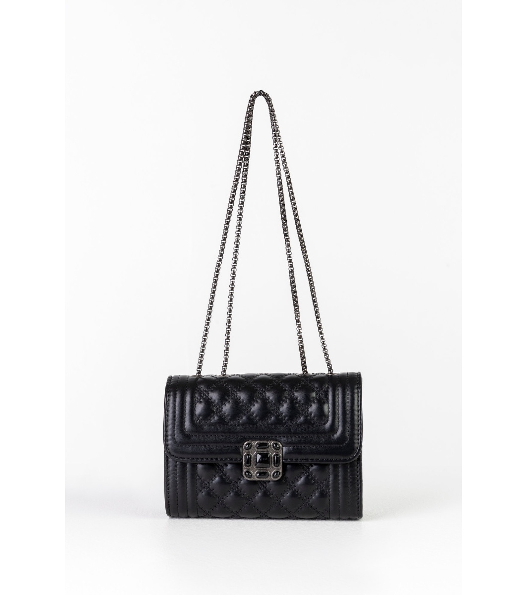 Emily Westwood Geantă neagră de damă cu design în relief și capac Beti Mânere lungi din lanț