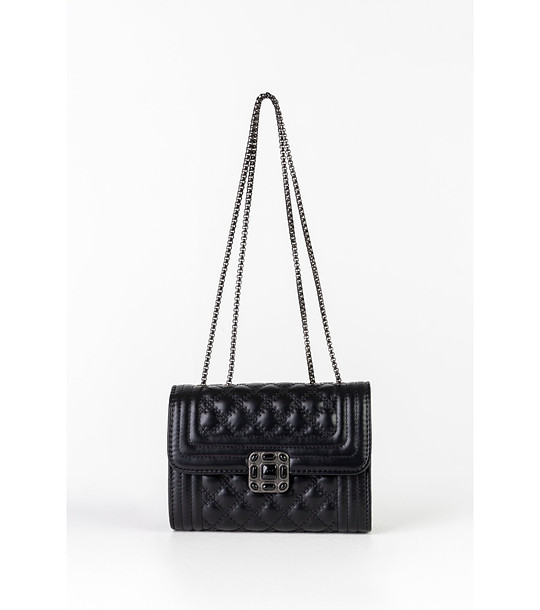 Geantă neagră de damă cu design în relief și capac Beti