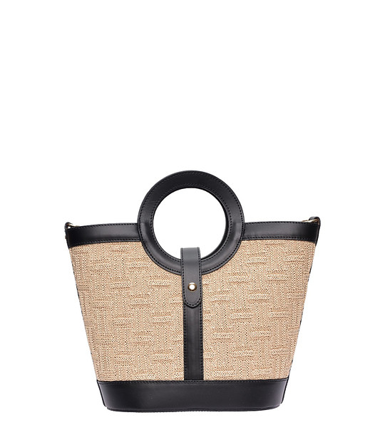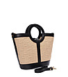 Geantă neagră din piele și rafie