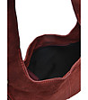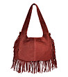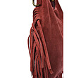 Geantă roșie cu franjuri din piele întoarsă naturală