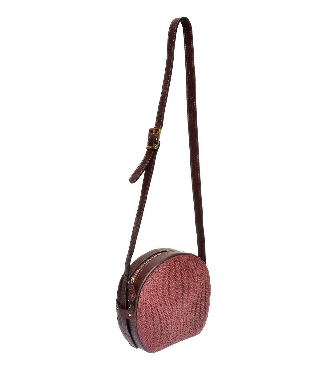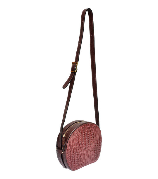 Geantă rotundă de damă din piele bordo cu relief spectaculos Darlene
