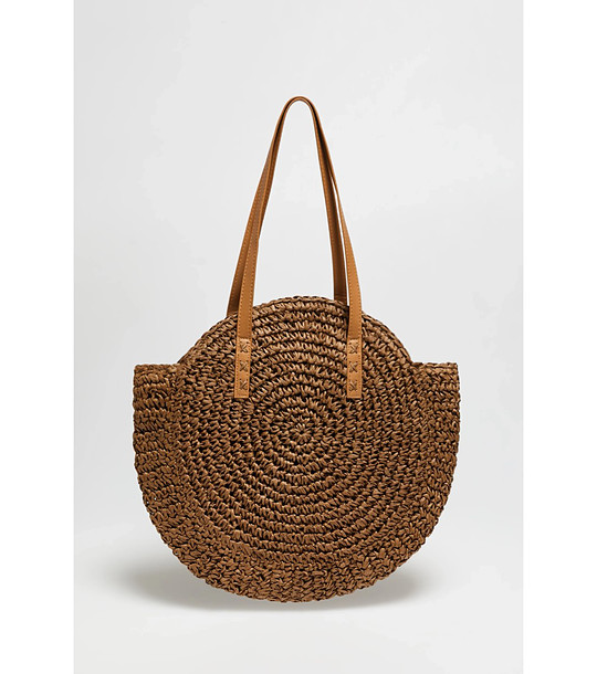 Moodo Geantă rotundă maro pentru femei Două mânere lungi
