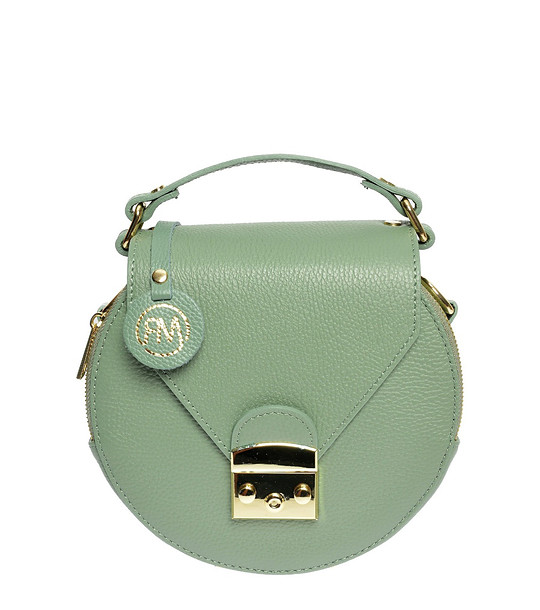 Geantă rotundă verde din piele