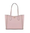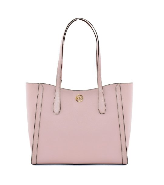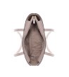 Geantă de damă cu design practic și mânere elegante. Închidere cu fermoar și element decorativ metalic pe față.