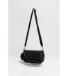 Husă mică rotundă cu fermoar, atașată de cureaua de umăr cu o carabinieră.